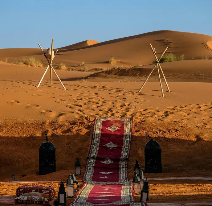 وبعدها، عِش تجربةً صحراويةً استثنائية في مخيمٍ فاخرٍ بين الكثبان الذهبية.